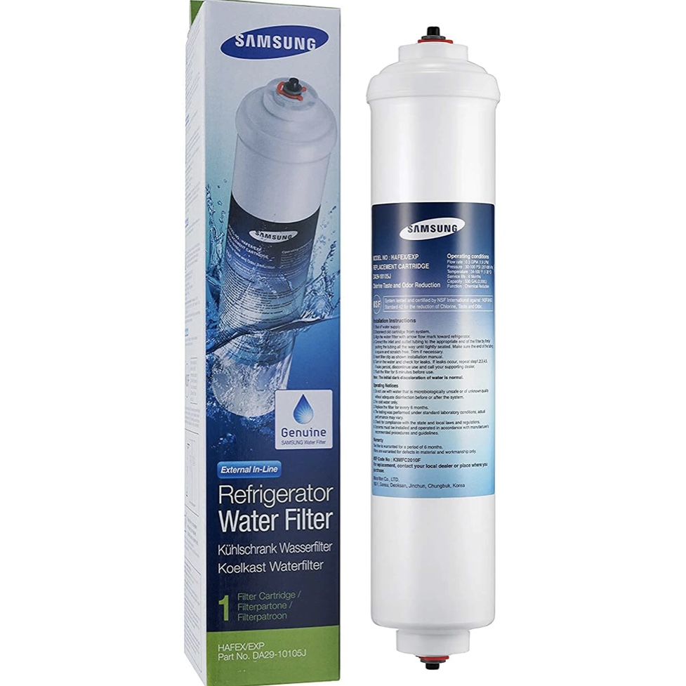 The DA29-10105J Samsung refrigerator water filter is a genuine OE part designed for fridge models that do not have a built-in water filter. In typically less than half an hour, this filter will install directly to your water line, and go to work almost immediately by significantly improving the taste of your water. Includes all hardware and mounting brackets necessary for installation. NSF 42 tested and certified. Get great tasting drinking water from your Samsung by ordering the DA29-10105J Samsung inline refrigerator water filter from us today.